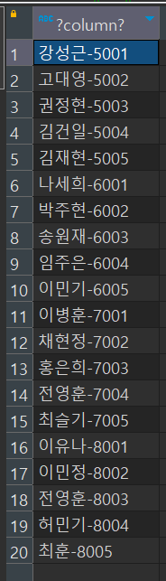 연결연산자(||) : 컬럼연합 (분리되어진 컬럼의 값들을 하나로 연결)